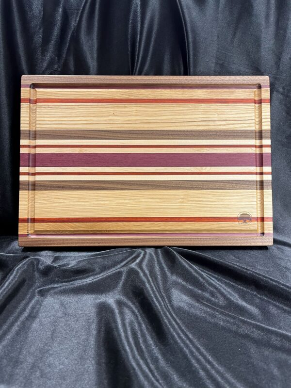 Suuremate mõõtudega premium lõikelaud, mille valmistamisel on kasutatud ameerika pähklipuud, ameerika vahtrapuud, tammepuitu, saarepuitu, purplehearti ja padouki. Värvikirev muster, mis lisab kontrasti igasse kööki.