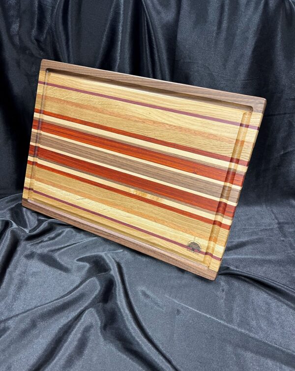 Suuremate mõõtudega premium lõikelaud, mille valmistamisel on kasutatud ameerika pähklipuud, ameerika vahtrapuud, tammepuitu, mahagoni, purplehearti ja padouki. Värvikirev muster, mis lisab kontrasti igasse kööki.